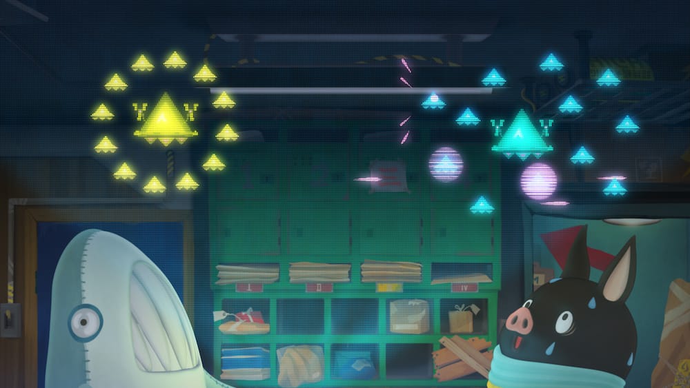 サメのUFOにたどり着いた2人。そこに現れたカトリーヌが、修理中のUFOを破壊してしまう。完全にキレたサメはカトリーヌに遅いかかる……!