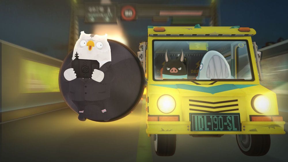 しびれを切らせたサメが店の配達車で勝手に出ていってしまう。慌てて後を追うヘミングウェイ。サメはご機嫌に運転しているが……。
